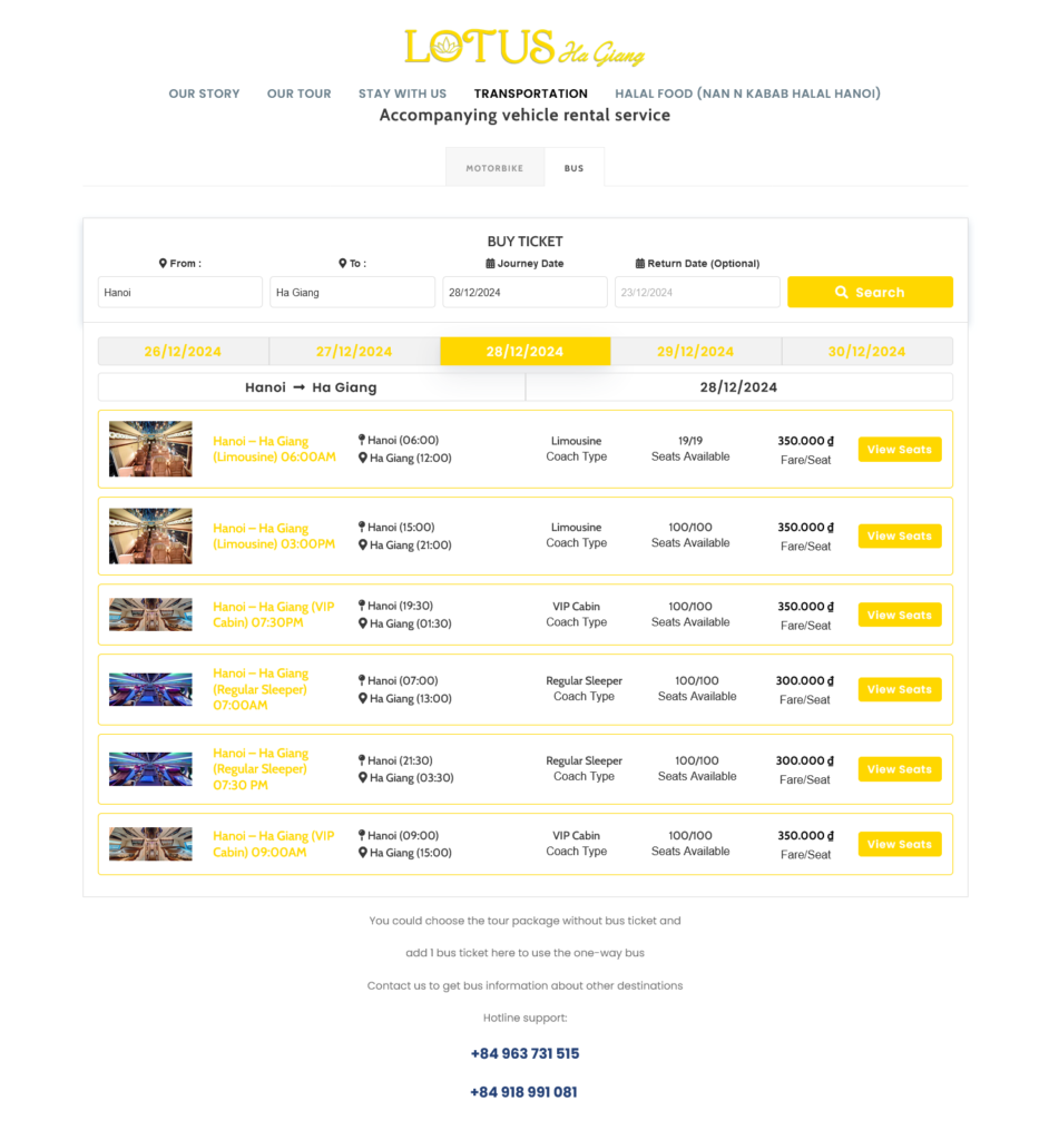If you’re unsure about which mode of transportation to choose, don’t worry! You can easily contact Lotus Group Ha Giang, a trusted travel agency specializing in transportation services from Hanoi to Ha Giang. We offer a variety of options, including buses, private cars, and motorbike rentals, tailored to your preferences and budget.